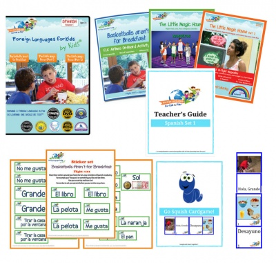 The Foreign Languages for Kids by Kids Starter Set 1 covers Spanish levels 1-3: