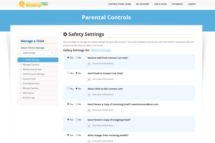 Part of what makes KidsEmail.org such a wonderful service is due to all the awesome parental controls that are available to parents.